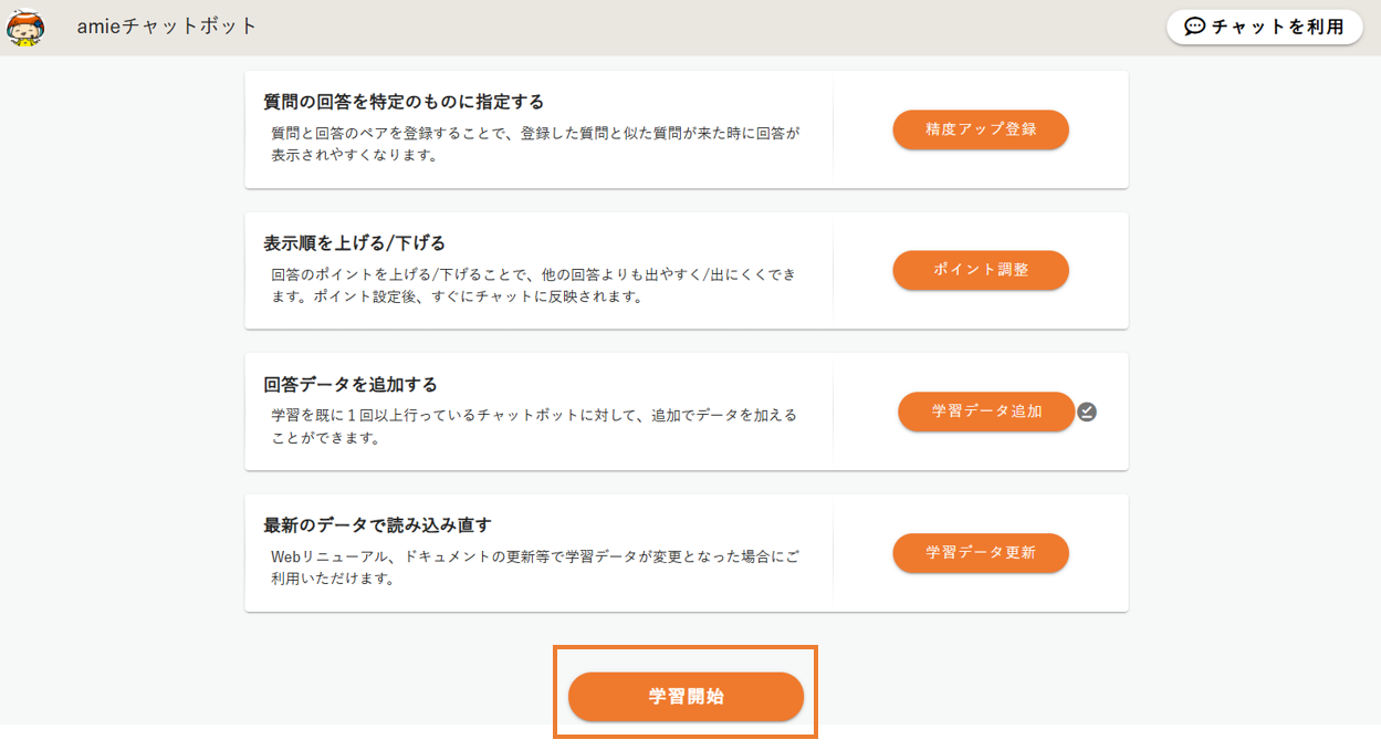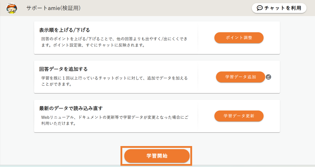 - 「学習開始」ボタンをクリックします。