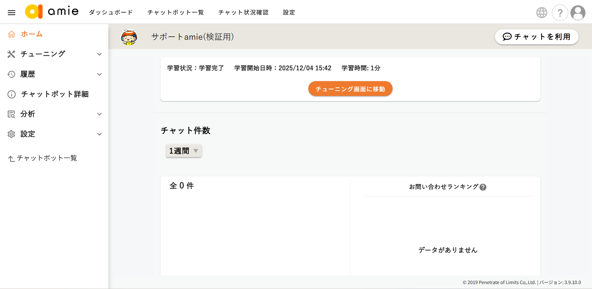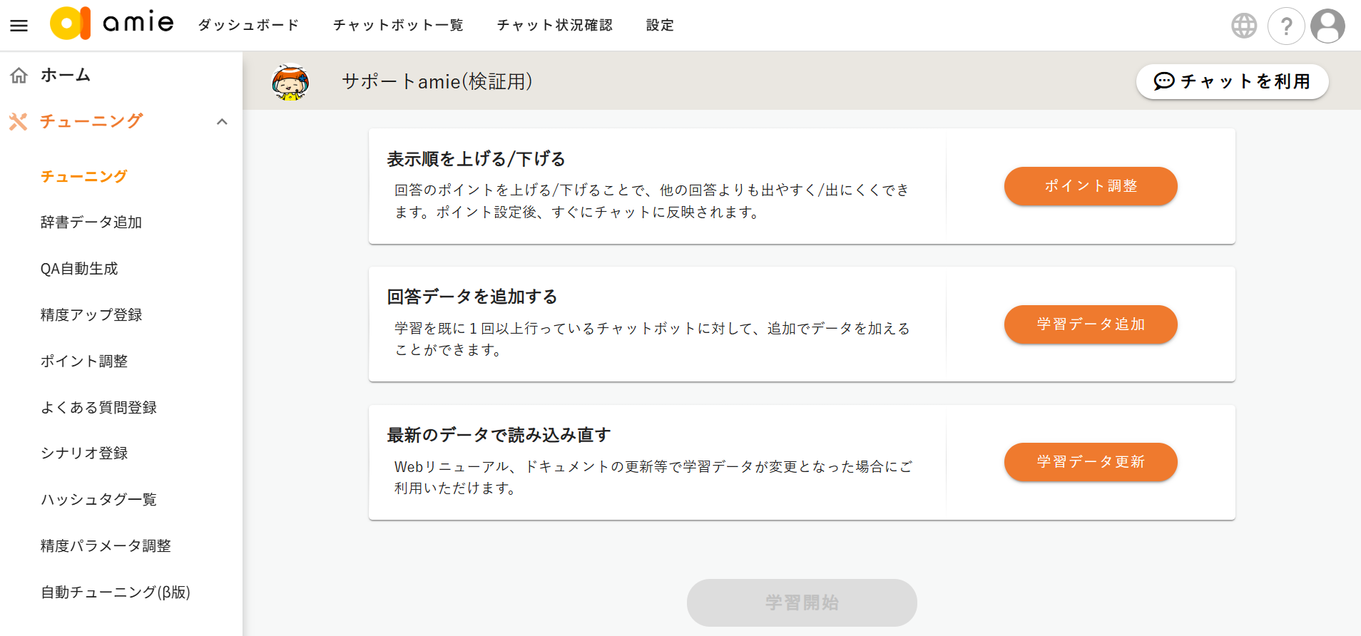 - 「チューニング」画面に戻ったら、「学習開始」ボタンをクリックします。