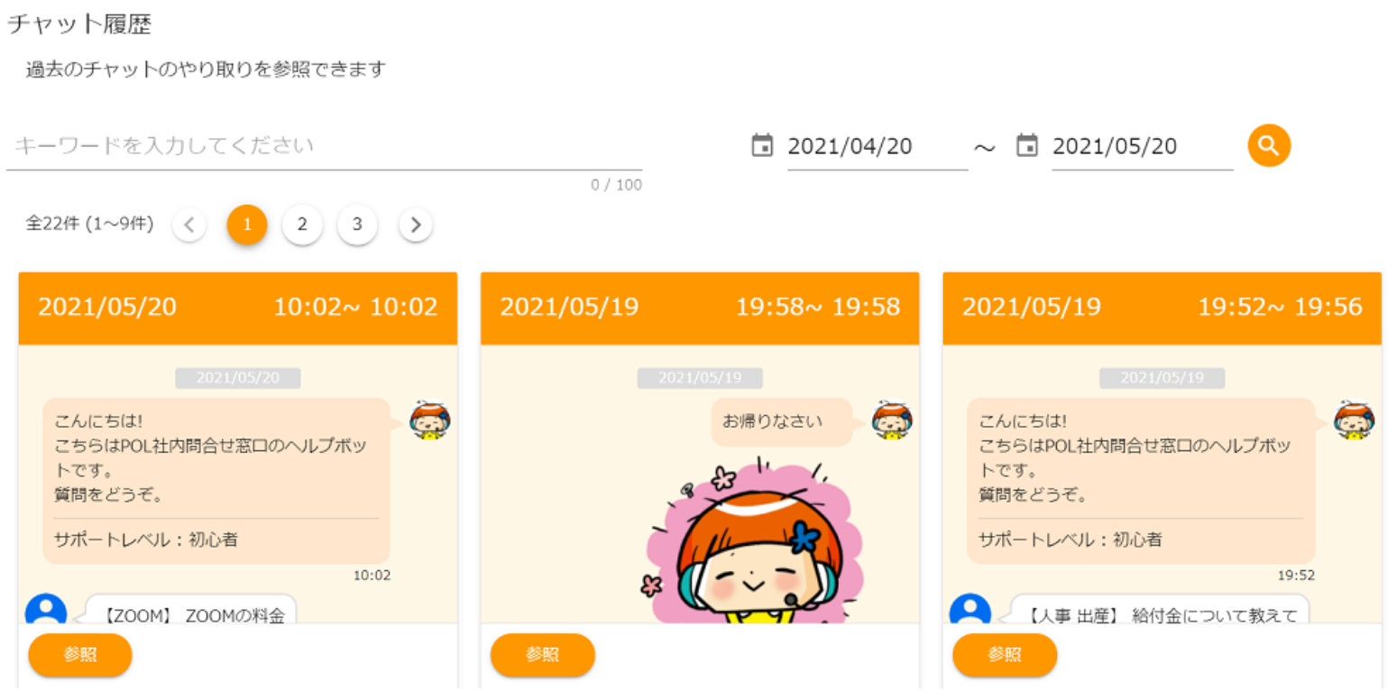 各チャット履歴の左下の「参照」をクリックすると、各チャットの詳細な履歴を確認することができます。