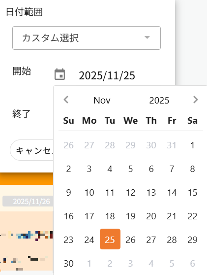 検索したい日付の範囲をカレンダーから指定すると、その範囲のチャット履歴が表示されます。